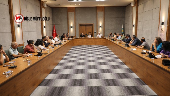 DEM Parti Basın Yayın ve Propaganda Komisyonu’ndan Sorumlu Eş Genel Başkan Yardımcısı Tayip Temel, HDK Eşsözcüsü ve DEM Parti Meclis Komisyon Üyesi Meral Danış Beştaş ve Amed Milletvekili Cengiz Çandar’ın katıldığı buluşmada, basında barış dilini geliştirmenin önemine vurgu yapıldı.