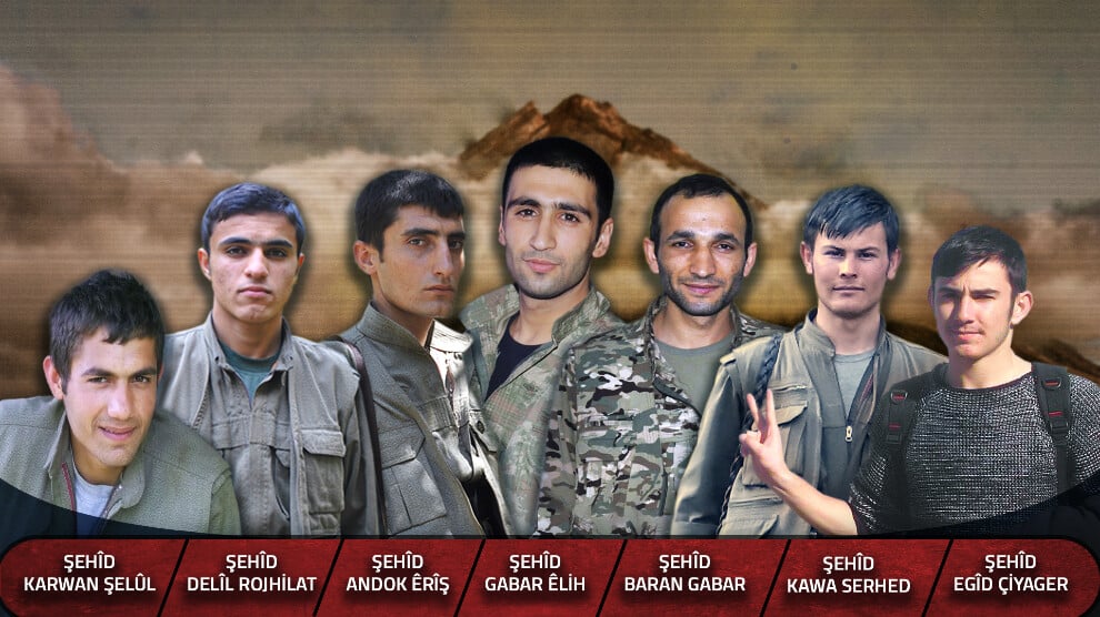 “Bakurê Kurdistan’da fedailik çizgisinde mücadele yürütürken farklı yer ve tarihlerde kahramanca şehadete yürüyen Delîl Rojhilat, Karwan Şelul, Kawa Serhed, Gabar Êlih, Baran Gabar, Andok Êrîş ve Egîd Çiyager yoldaşlarımızı saygıyla anıyoruz.” denildi.