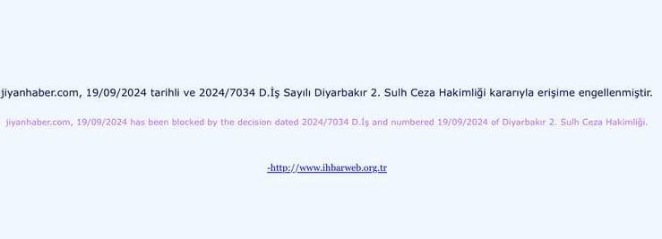 İnternet gazetemizin “Jiyanhaber.com” alan adı, Diyarbakır 2’nci Sulh Ceza Hakimliği’nin kararıyla erişime engellendi.