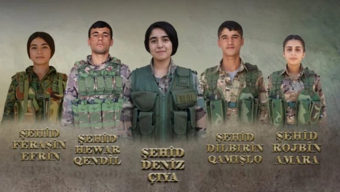 “Başta, Şêxmeqsûd ve Eşrefiyê mahallelerinin direnişinde fedai bir duruşla şehadete ulaşan direnişçi halkın evlatları; Denîz Çiya, Hawar Qendil, Rojbin Hesekê, Dilbirîn Qamişlo ve Feraşîn Efrîn’i saygıyla anıyoruz. Onların eşsiz mücadelesi karşısında saygıyla eğiliyoruz. Başta özgürlüğün mimarı Önder Apo olmak üzere, kahraman direnişçilerin ailelerine ve yurtsever halkımıza başsağlığı diliyoruz. 6 Ocak 2026’dan itibaren, bir yok etme konsepti çerçevesinde ve hegemon güçlerin desteğiyle; işgalci Türk devleti ve HTŞ geçiş hükümetine bağlı çeteler insanlık dışı bir saldırı başlatmıştır. İki küçük mahalleye karşı her türlü hava ve kara silahı kullanılmıştır. Bu saldırılar karşısında komutan ve savaşçılarımız, ilk günden bugüne kadar teslimiyeti kabul etmeyen duruşlarından taviz vermeden direnmişlerdir. Bu onur savaşında fedai yoldaşlar Denîz, Hawar, Rojbin, Dilbirîn ve Feraşîn, zafer kararlılığıyla en ön cephelerde yer almıştır. İşgalci devletin Kürt halkına ve bölgedeki tüm halklara karşı yürüttüğü özel savaş ve yok etme politikalarına karşı büyük bir cevap olmuşlardır. Yüksek moral ve coşkuyla onur savaşına katılmış, duruşlarıyla halk içinde büyük bir manevi güç yaratmışlardır. Kısıtlı imkânlar ve bireysel silahlarıyla Şêx Meqsûd ve Eşrefiyê halkına öncülük etmiş, çeşitli eylemlerle çetelerin birçok saldırısını boşa çıkarmışlardır. Eşrefiyê ile Şêx Meqsûd mahalleleri arasında, binlerce yıllık direniş geleneğinin mirasçıları olarak işgalci düşmanı “Jin Jiyan Azadî” felsefesiyle yenilgiye uğratmışlardır. Bu halk gücü karşısında duramayan ve cihatçı zihniyetiyle dünya için büyük bir tehdit oluşturan işgalci düşman, her türlü insanlık dışı yönteme başvurmuştur. Kara ve hava teknolojisi, binlerce ahlak ve savaş hukukundan yoksun çete, zehirli gazlar ve her türlü saldırı yöntemiyle halkın onuruna saldırmıştır. Ancak yoldaşlarımız son ana kadar baş eğmemiş, halkın değerlerini savunmuştur.