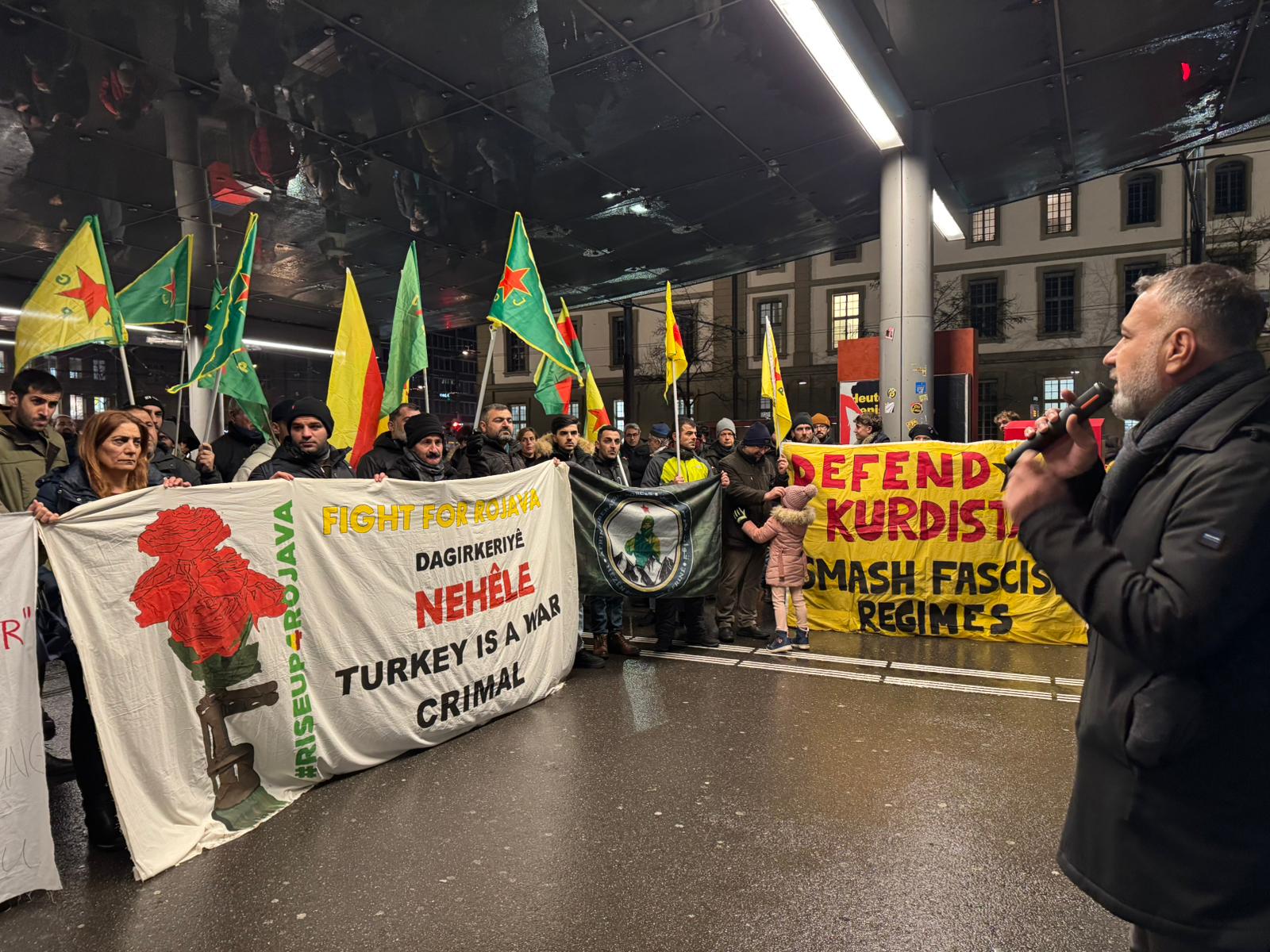 Konuşmacılar, saldırıların askeri değil doğrudan sivil halka yönelik olduğuna dikkat çekerek, Kürt halkının bir kez daha kuşatma, zorla göç ve katliam tehdidiyle karşı karşıya bırakıldığını ifade etti. Mahallelerde yaşayan binlerce kişinin güvenlik gerekçesiyle evlerini terk etmek zorunda kaldığı, bölgede insani durumun her geçen gün ağırlaştığı aktarıldı.