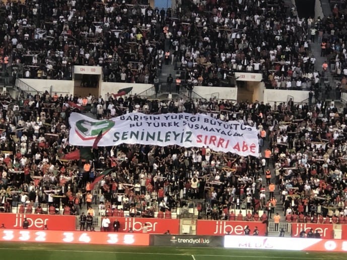 Türkiye Futbol Federasyonu (TFF) 1. Lig’de 51 puana sahip olan Amedspor, yine 51 puanda bulunan rakibi Çorum FK’yi sahasında ağırlıyor. Maç öncesi Amedspor taraftarları “Diren ha Sırrı Abi” sloganları ve “Barışın yüreği büyüktür. Bu yürek susmayacak. Seninleyiz Sırrı Abê” pankartı açtı.