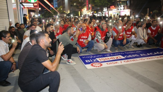 VAN – Kayyım yönetimindeki Van Büyükşehir Belediyesi tarafından 223 işçinin işten çıkarılmasına karşı, DİSK Genel-İş öncülüğünde gerçekleştirilen eylem bugün de yürüyüş ve basın açıklamasıyla devam etti.